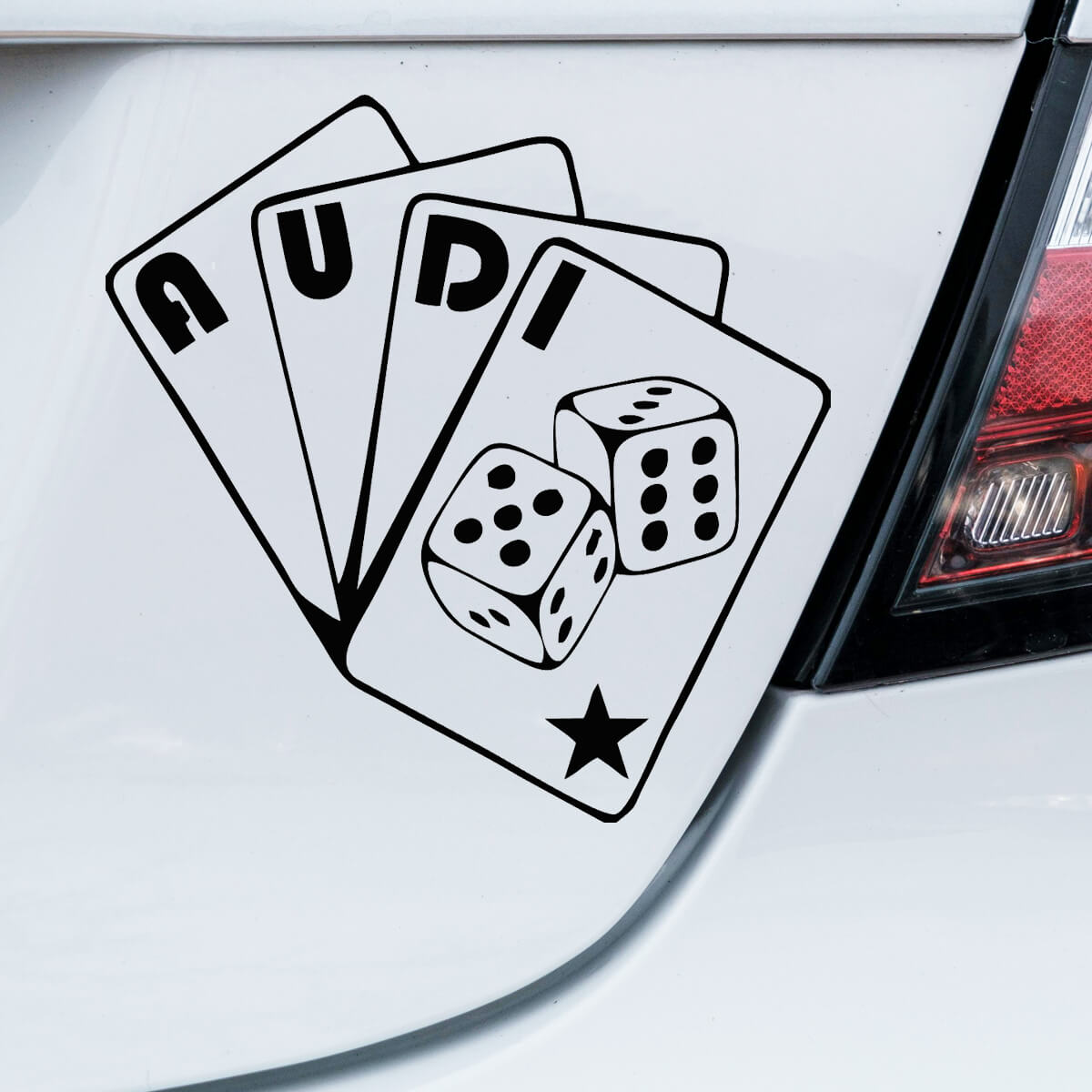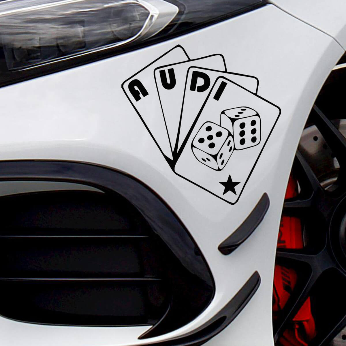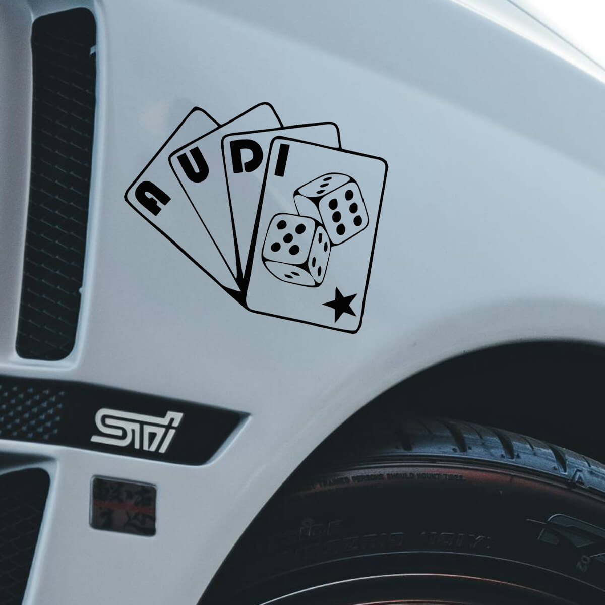 Die Aufkleber „AUDI KARTE“ sind originelle und verspielte Autoaufkleber, die das klassische Motiv von Spielkarten mit dem ikonischen Schriftzug Audi kombinieren. Diese einzigartige Kombination fügt nicht nur dem Auto ein lustiges und einzigartiges visuelles Element hinzu, sondern drückt auch die Liebe zum Spiel und die Leidenschaft für die Marke Audi aus. Auf jeder Karte ist der elegante eingravierte oder gedruckte Schriftzug Audi zu sehen, was einen attraktiven und raffinierten Effekt erzeugt, der sicherlich Aufmerksamkeit erregt und den Sinn für Stil und die Zuneigung zur Marke des Besitzers zum Ausdruck bringt.