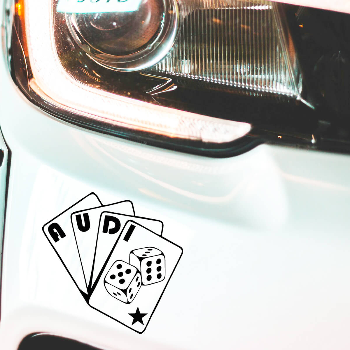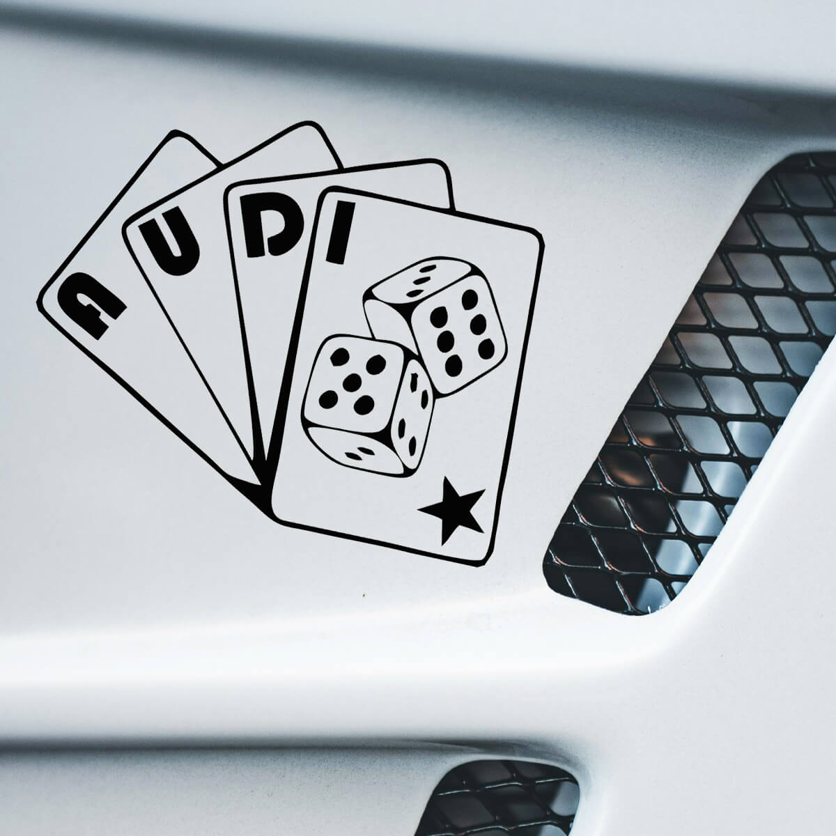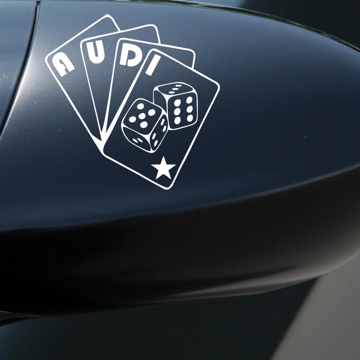 Die Aufkleber „AUDI KARTE“ sind originelle und verspielte Autoaufkleber, die das klassische Motiv von Spielkarten mit dem ikonischen Schriftzug Audi kombinieren. Diese einzigartige Kombination fügt nicht nur dem Auto ein lustiges und einzigartiges visuelles Element hinzu, sondern drückt auch die Liebe zum Spiel und die Leidenschaft für die Marke Audi aus. Auf jeder Karte ist der elegante eingravierte oder gedruckte Schriftzug Audi zu sehen, was einen attraktiven und raffinierten Effekt erzeugt, der sicherlich Aufmerksamkeit erregt und den Sinn für Stil und die Zuneigung zur Marke des Besitzers zum Ausdruck bringt.