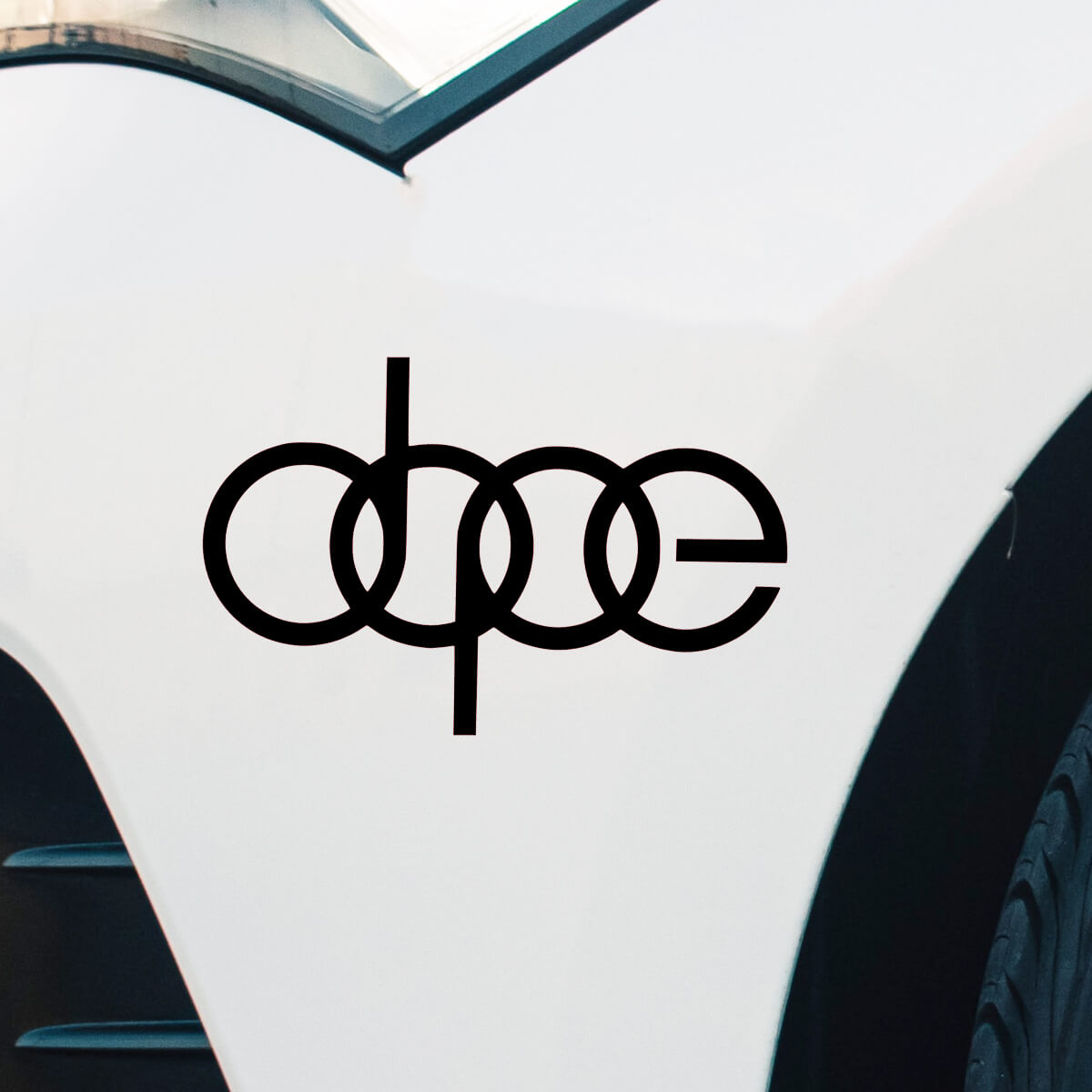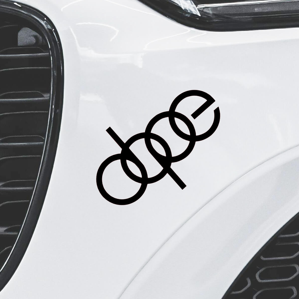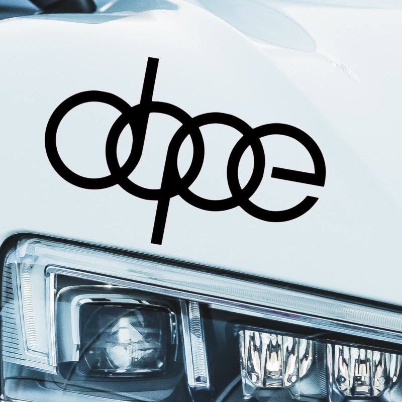 Das Aufkleber AUDI Logo DOPE stellt eine innovative und kreative Interpretation des klassischen Audi-Logos dar, bei der einer der vier bekannten Ringe geschickt in den Buchstaben „P“ umgewandelt wird, um das Wort „DOPE“ zu bilden. Diese einzigartige Transformation bewahrt nicht nur die Wiedererkennbarkeit des Originallogos, sondern verleiht dem Auto auch einen modernen und jugendlichen Touch.