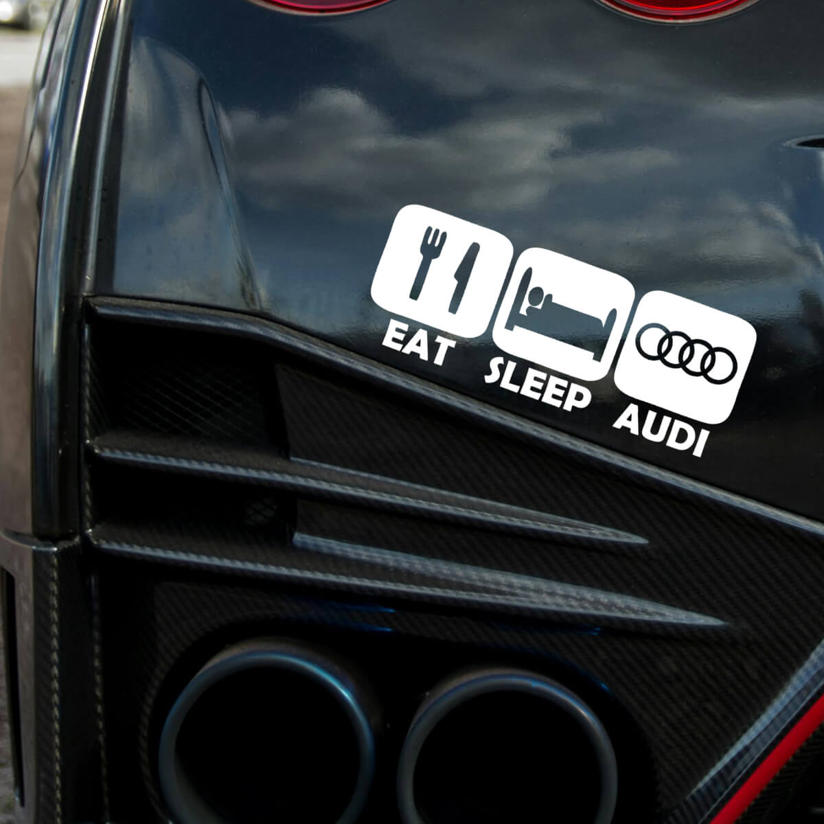 Das Etikett „EAT SLEEP AUDI“ ist für echte Autofans gedacht, die ihr Leben um die Liebe zu Autos, insbesondere der Marke Audi, drehen. Dieses einfache, aber starke Botschaftsetikett fasst den Lebensstil des Besitzers zusammen, der tief dem Automobilismus verpflichtet ist – essen, schlafen und von Audi träumen. Mit ihm drücken Sie deutlich Ihre Leidenschaft für die Marke und die Automobilkultur aus und verleihen Ihrem Fahrzeug gleichzeitig eine persönliche Note.