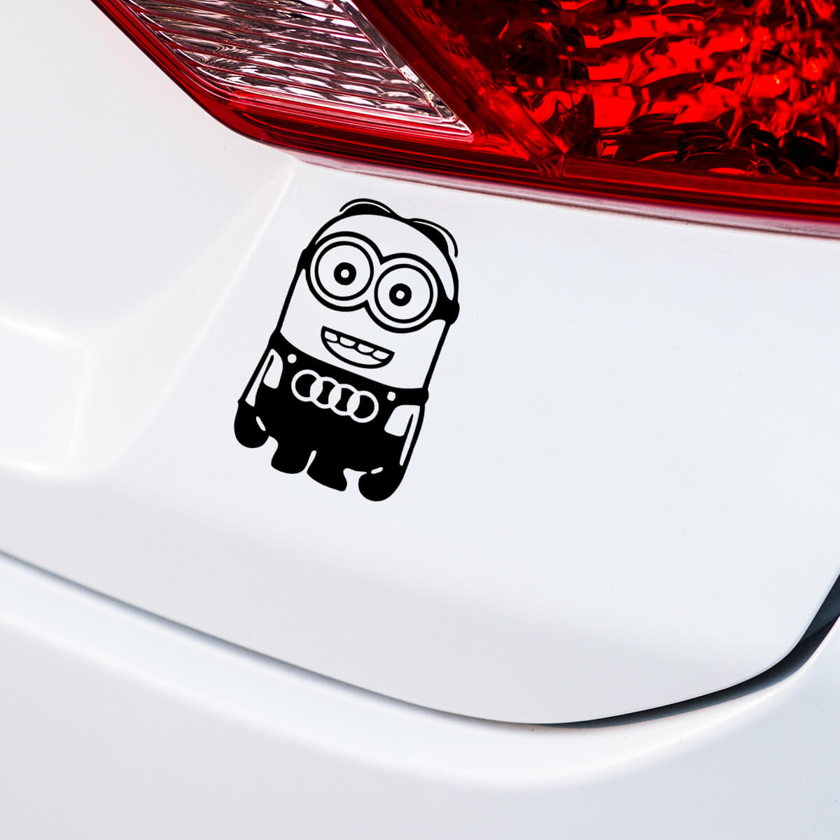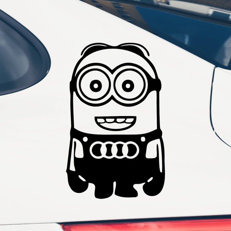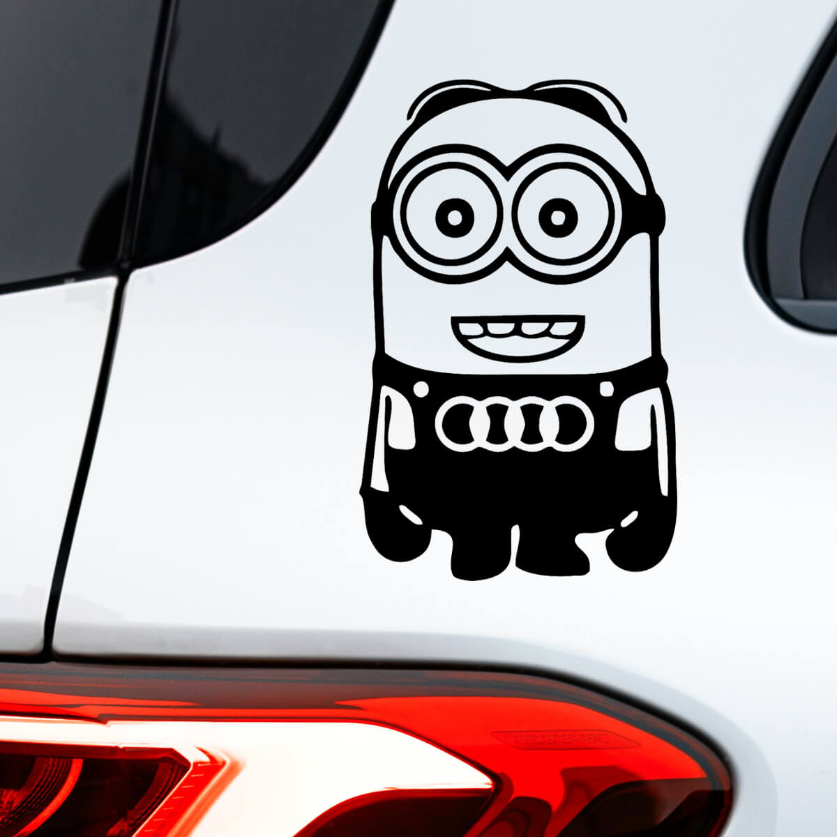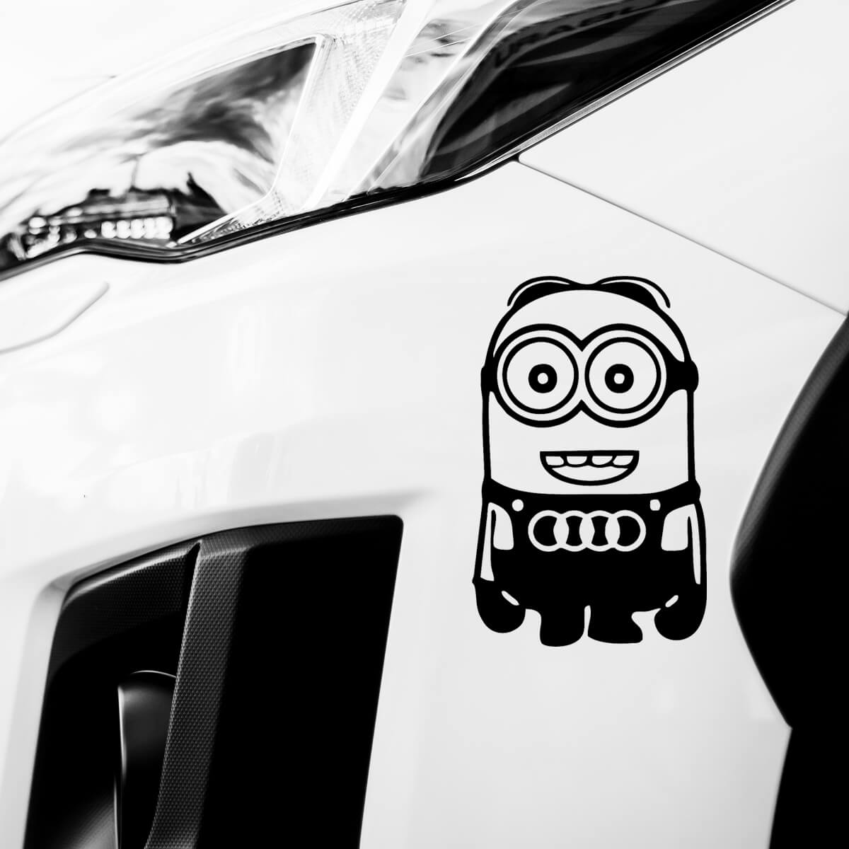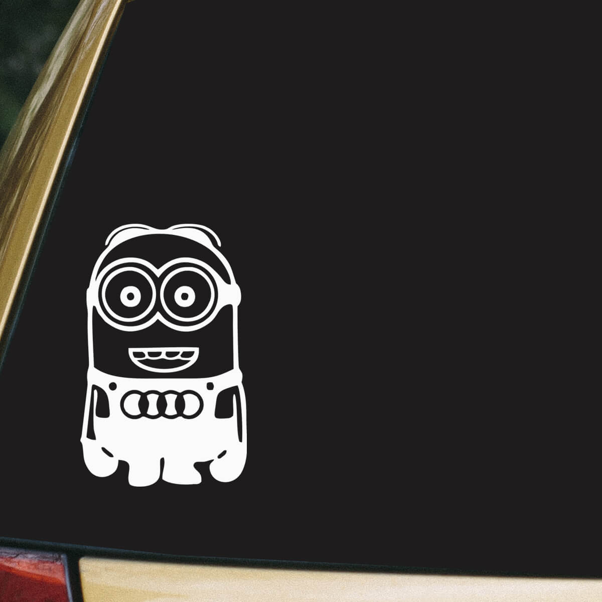 Der Aufkleber ist ideal für Liebhaber von Animationsfilmen und der Marke Audi, die ihrem Auto einen Hauch von Jugend und Spaß verleihen möchten. Der Minion, bekannt für seine Niedlichkeit und lustigen Abenteuer, in Kombination mit dem Audi-Logo, schafft ein einzigartiges visuelles Element, das die Liebe des Besitzers zu Spaß, Filmen und natürlich seinem Auto zum Ausdruck bringt.