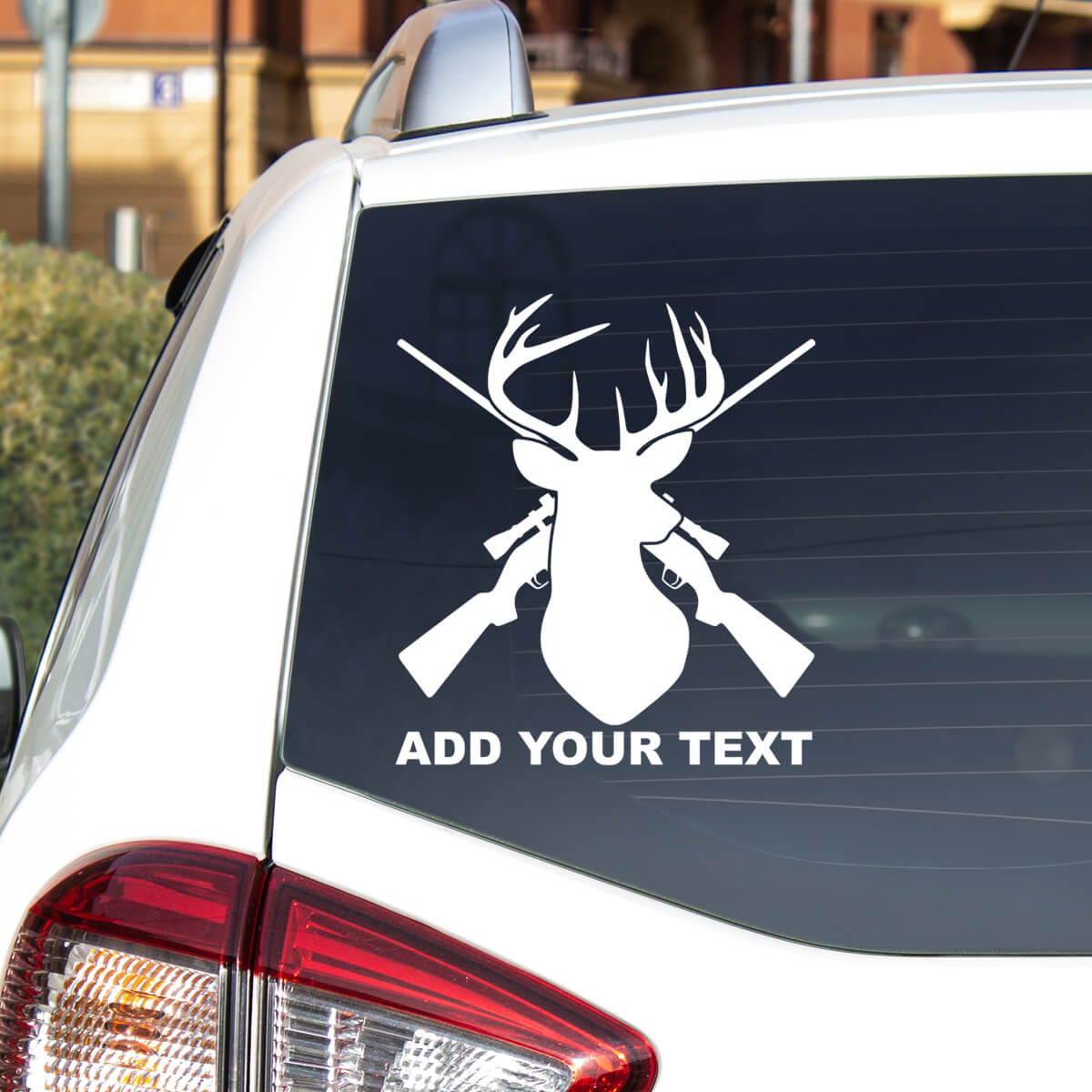 Jagdsticker Hirsch und Gewehre ist ideal für diejenigen, die ihrem Auto eine starke und entschlossene Botschaft über ihre Leidenschaft für die Jagd hinzufügen möchten. Auf dem Sticker sticht die Silhouette eines Hirsches hervor, umgeben von zwei gekreuzten Gewehren, was die Stärke und Präzision des Jägers sowie seinen Respekt vor der Natur und den Wildtieren symbolisiert. Unten gibt es Platz, um Ihren persönlichen Text hinzuzufügen, was eine vollständige Anpassung des Stickers ermöglicht.