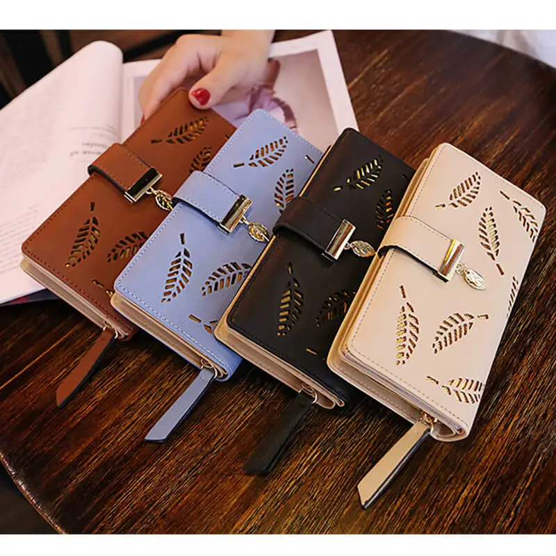 Denarnice za ženske iz usnja z motivom listja