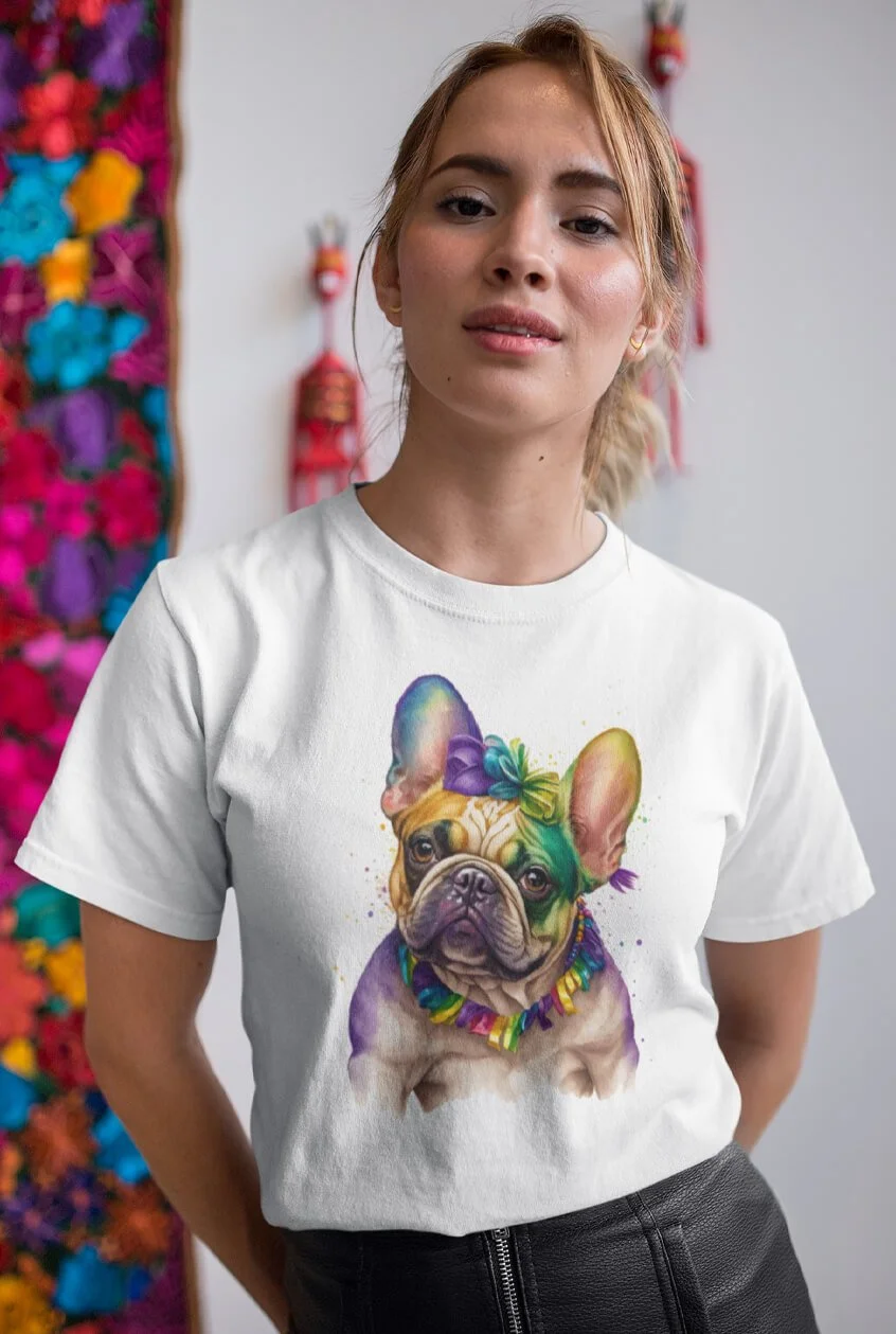 Tisk na majice z motivom mavričnega francoskega buldoga, je odličen način, da vsem sporočite, koliko obožujete to pasmo v izredno moderni majici ter moderno grafično podobo. Barve so prekrasne in žive. S takšnim tiskom poslikave na majico boste sigurno poželi veliko pohval.