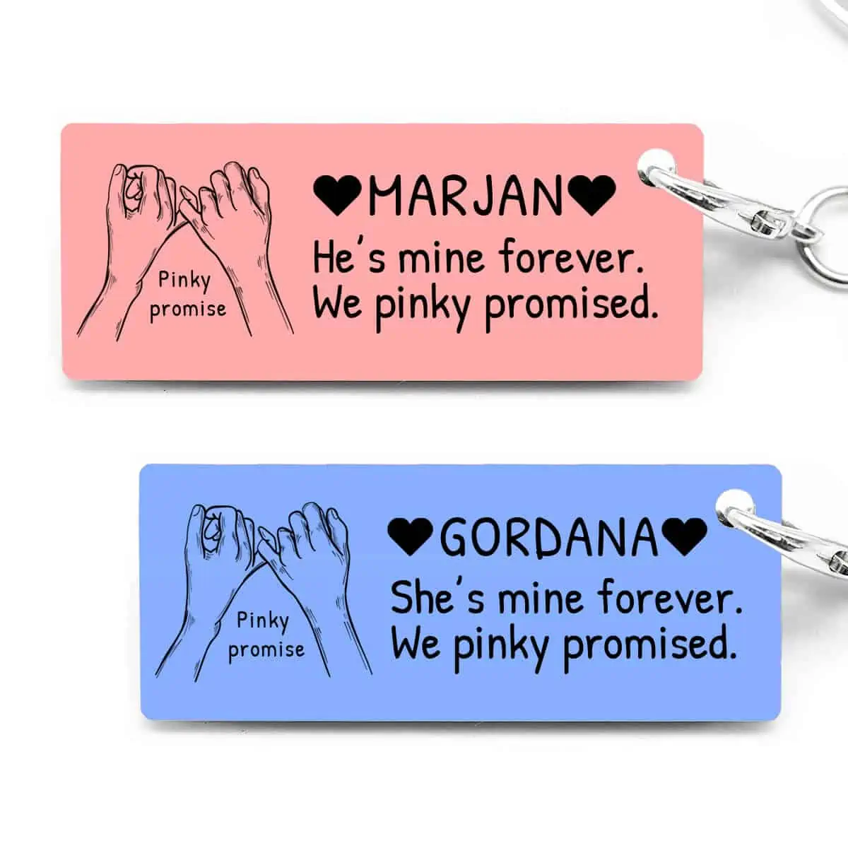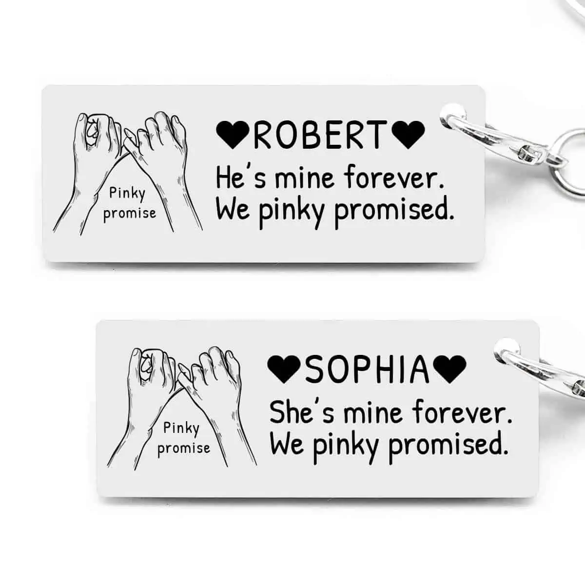 Ovi privjesci za ključeve Pinky promise namijenjeni su svim parovima koji se vole i žele zavijek biti zajedno.