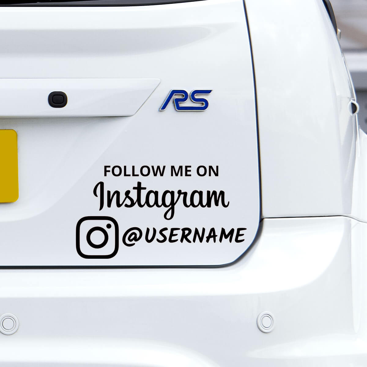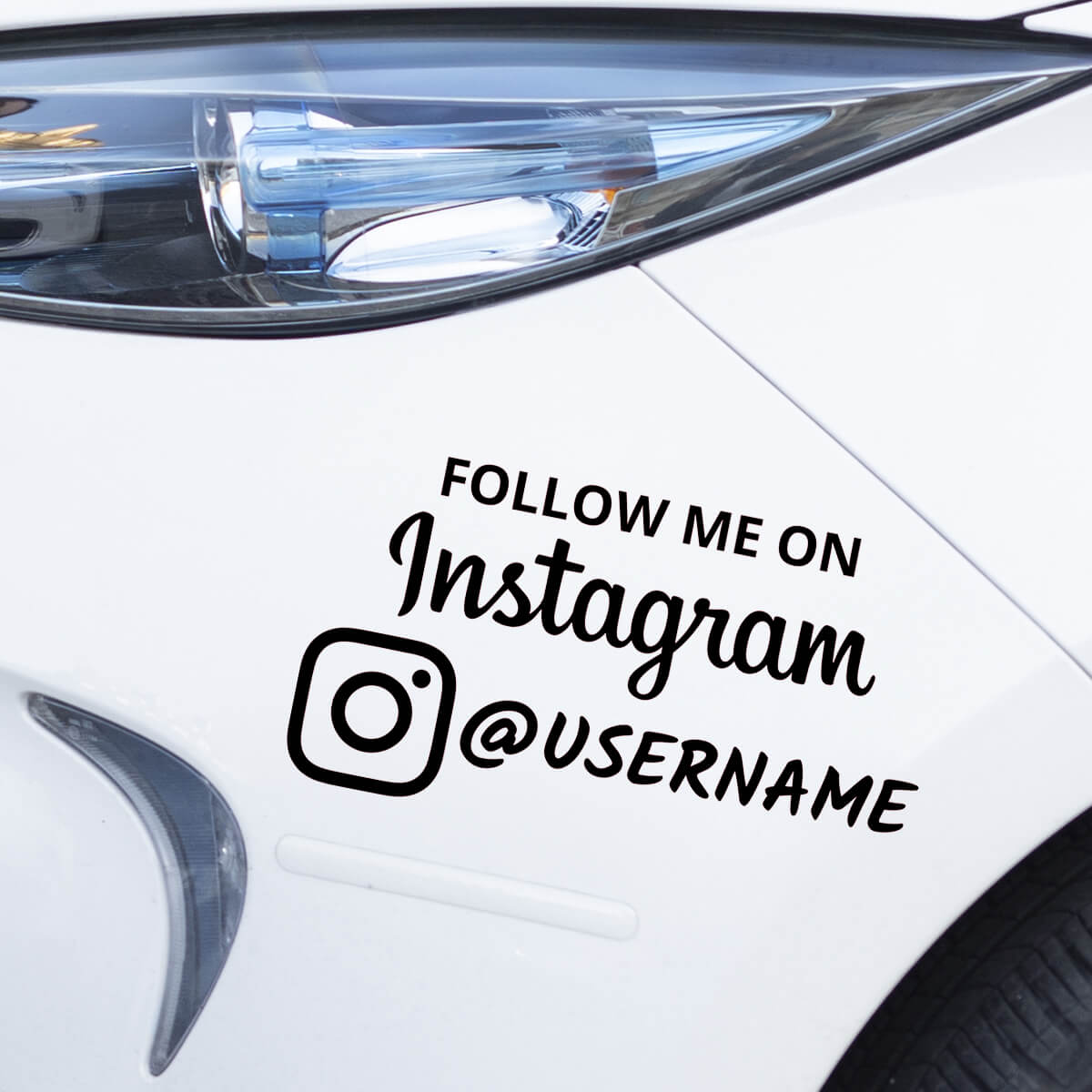 INSTAGRAM follow nalepka na slikah izstopa z velikim, prepoznavnim logotipom Instagrama in elegantno kombinacijo tiskanih ter rokopisnih črk, ki izgledata izredno lepo na karoseriji. Postavljena ob zadnje luči, na vrata ali steklo vozila ustvari čist in moderen videz, ki se odlično poda tako svetlim kot temnim avtomobilom. Zaradi jasnega kontrasta bo napis opazen že od daleč in bo tvojemu avtu dodal svež, personaliziran pridih.