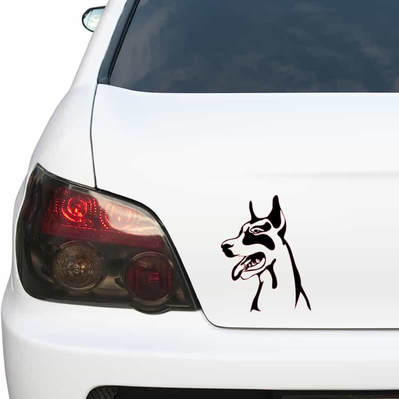 L’adesivo per auto Doberman mostra la sagoma della razza Doberman in posizione di attenzione. L’adesivo è realizzato in vinile di alta qualità, facile da applicare sulla superficie dell’auto e resistente alle intemperie e allo sbiadimento dei colori.