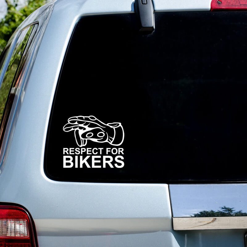 Adesivo per motociclisti Rispetto per i motociclisti è un ottimo modo per attaccare al proprio veicolo un bellissimo messaggio che tutti i motociclisti vedranno mentre sorpassano.
