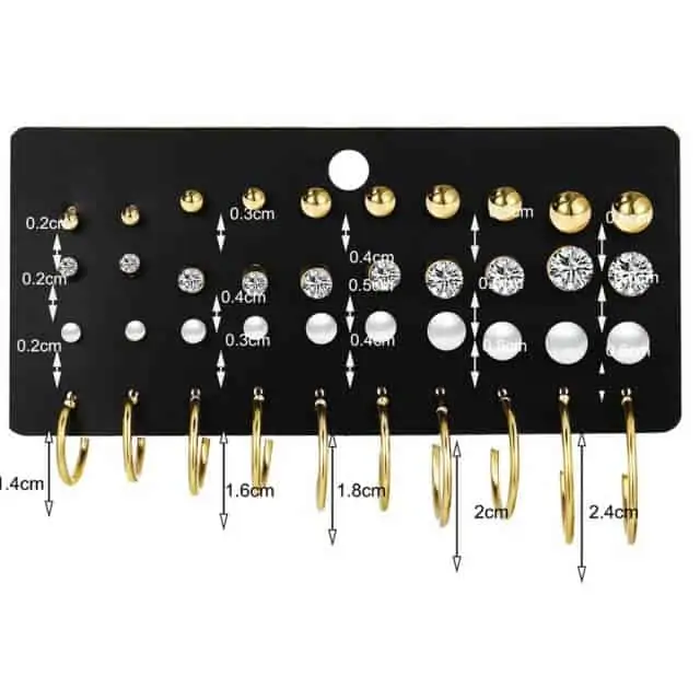 Komplet uhanov je primeren za vse punce, ki imajo rade vtične uhane ter veliko izbiro velikosti.
