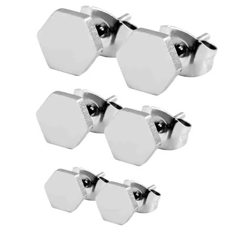 Komplet uhanov šesterokotniki narejenih iz vrhunskega nerjavečega jekla, ki je primeren tudi za alergike.
