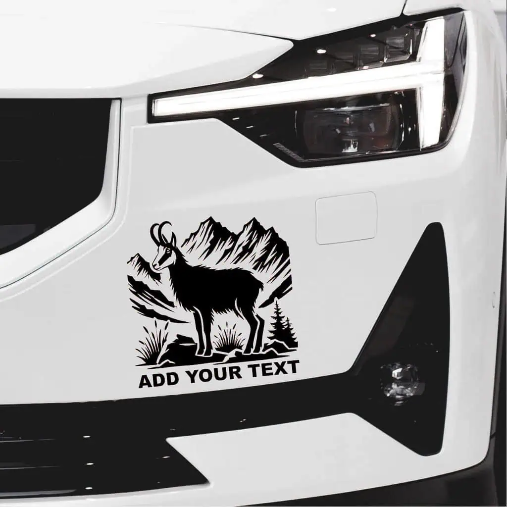 Lovska nalepka GAMS in gore je popolna izbira za vse, ki obožuješ visoke gore in spoštuješ gamsa kot simbol trdoživosti in elegance v divjini. Na nalepki je upodobljen mogočen gams, ki stoji v gorskem okolju, obdan z dramatično pokrajino gora in rastlinja. Ta motiv bo odlično izstopal na tvojem vozilu, saj izraža tvojo ljubezen do lova in naravnega okolja. Idealna je zate, če si ljubitelj lova v gorskem svetu in želiš to pokazati na svojem avtomobilu. Prostor za dodajanje lastnega besedila ti omogoča, da prilagodiš nalepko po svojih željah in dodaš osebni pečat.