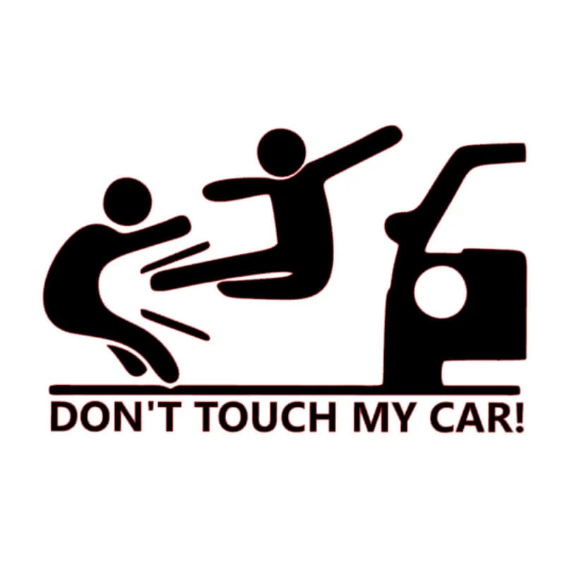 Na nalepki za avto je narisan avto ter lastnik avtomobila, kaj se bo zgodilo, če se boste dotikali njegovega vozila. Izredno priljubljena nalepka za vse, ki želite na smešen način preko nalepke za avto sporočiti močno sporočilo.