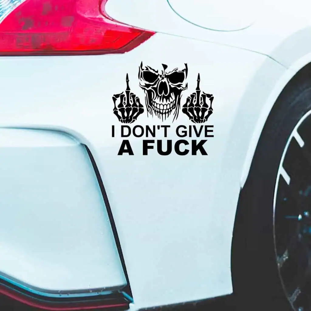 Naše nalepke so izdelane iz materialov vrhunske kakovosti, kar zagotavlja njihovo odpornost na različne vremenske pogoje in dolgo življenjsko dobo. So enostavne za nameščanje na katero koli površino avtomobila in jih je mogoče brez težav odstraniti, ne da bi pri tem poškodovali lak ali pustili sledi lepila. Z nalepko I Don’t Give a Fuck in glavo kostkona, ki kaže z obema rokama gesto “fuck you”, ne boste samo poudarili svoje individualnosti, ampak tudi zagotovili, da vaše vozilo ostane nedotaknjeno.