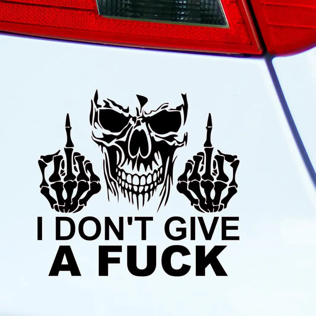 Nalepka za avto z napisom I Don’t Give a Fuck in glavo kostkona, ki kaže z obema rokama gesto “fuck you”, je drzna in neposredna izjava vašega stališča do sveta. Ta nalepka nedvoumno sporoča vašo neomajnost in nezainteresiranost za tuja mnenja ali sodbe, kar daje vašemu vozilu močan karakter in poudarek na vašo osebno svobodo.