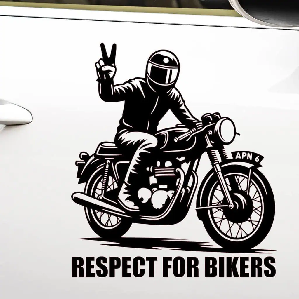Nalepka za avto APN 6 “Respect for bikers” je edinstvena in izrazita nalepka, ki voznikom sporoča, naj spoštujejo motoriste na cesti. Z njenim jasnim in močnim sporočilom “Respect for bikers” bo vsak avtomobil ne le izstopal, ampak tudi pomagal širiti zavest o pomembnosti medsebojnega spoštovanja med vozniki in motoristi. Ta nalepka je posebej zasnovana za tiste, ki se zavedajo pomena varnosti na cestah in želijo pokazati podporo motoristični skupnosti. Naše nalepke so odporne na vremenske vplive, dolgo obstojne, preproste za uporabo in ne poškodujejo površine avtomobila, kar pomeni, da lahko svoje sporočilo širite brez skrbi. Namenjene so vsem, ki cenijo varnost na cestah in želijo aktivno prispevati k pozitivni prometni kulturi.
