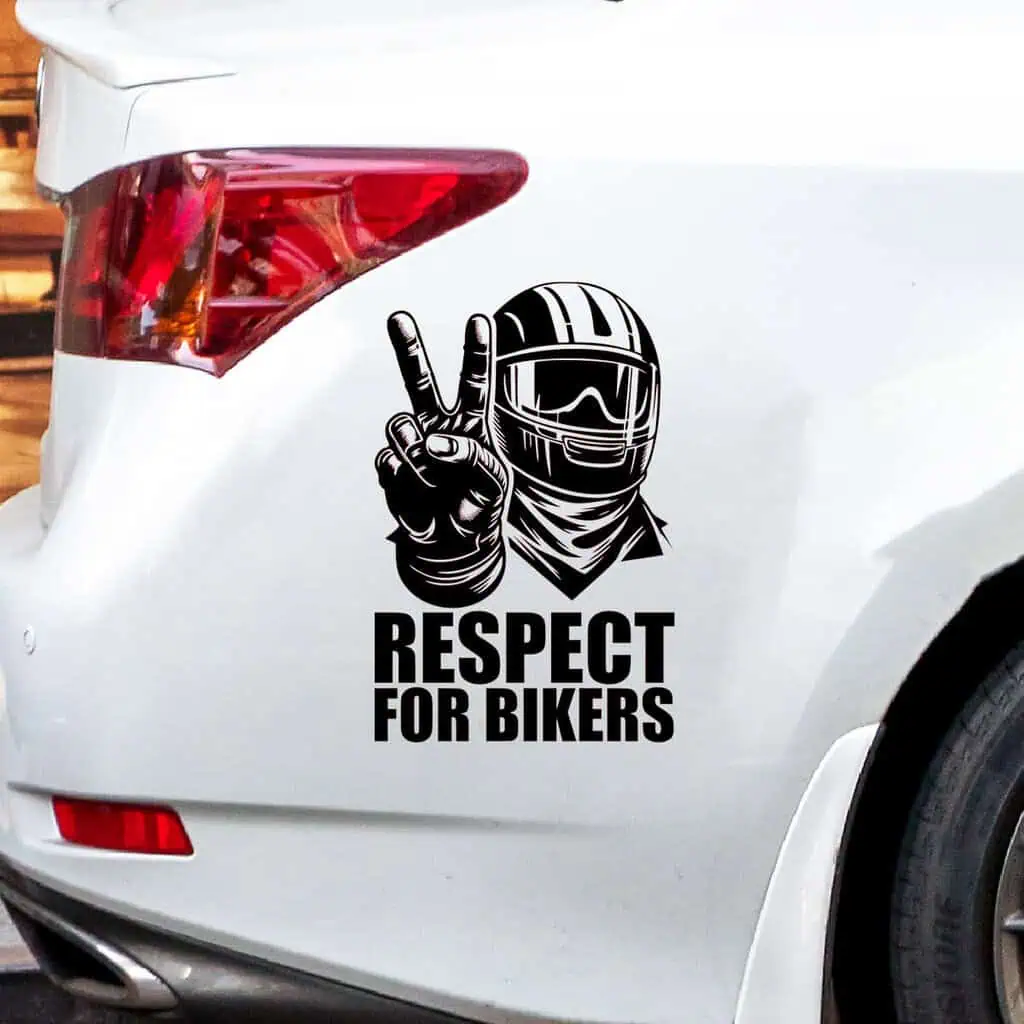 Izdelana iz visokokakovostnih, vremensko odpornih materialov, ta nalepka zagotavlja dolgotrajno obstojnost in ohranja svoje sporočilo jasno vidno ne glede na zunanje vplive. Enostavna za namestitev na katerikoli del avtomobila, omogoča lastnikom vozil, da brez skrbi izrazijo svojo podporo motoristični skupnosti in svoje spoštovanje do vseh motoristov.