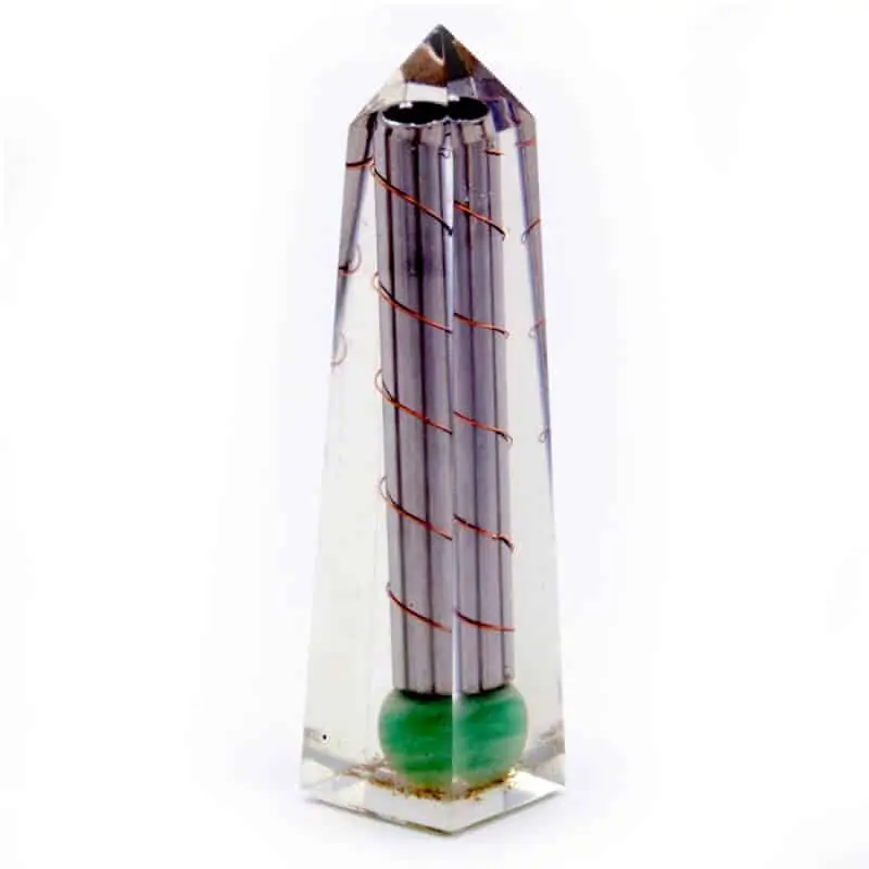 Orgonit z zelenim aventurinom je prekrasen kreator življenjske energije izdelan iz zelenega kristala aventurina in bakrene žice, vstavljene v smolo.