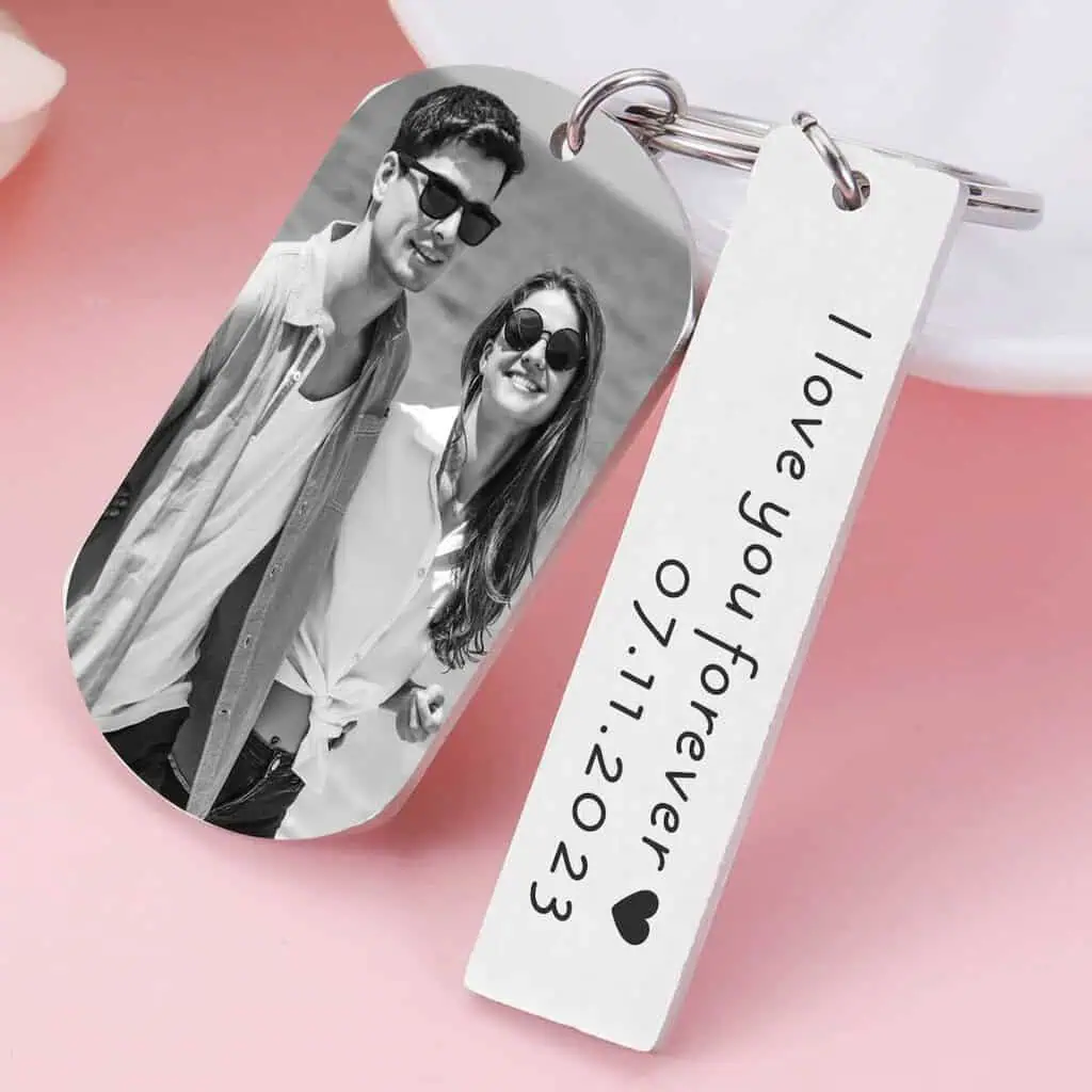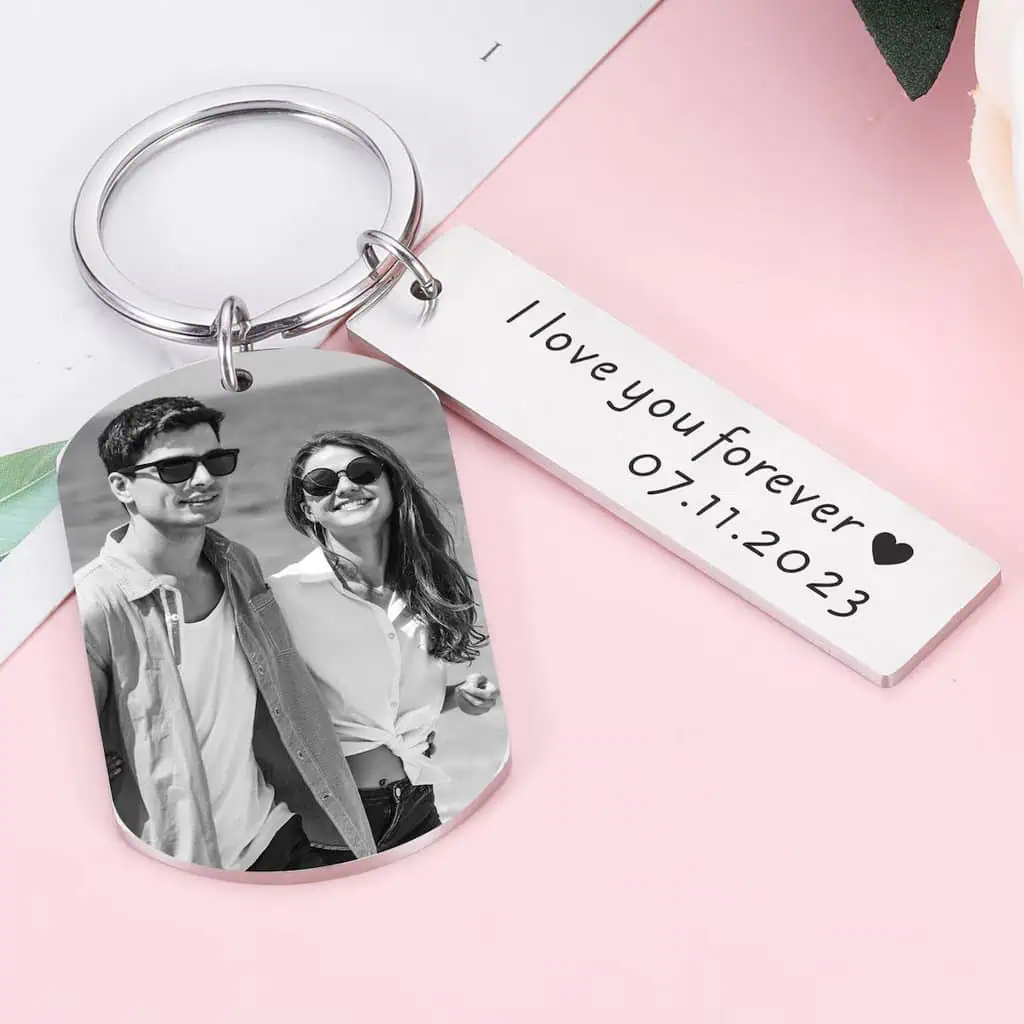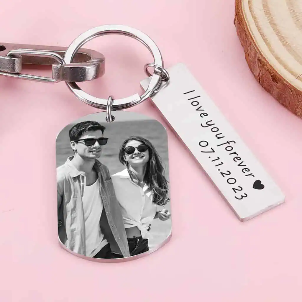 Naš personalizirani obesek za ključe z gravirano sliko in tekstom je več kot le ključna dekoracija. Je trajen spomin, ki bo ljubljeni osebi vedno pričaral nasmeh na obraz in vas spominjal na pomembne trenutke v življenju.