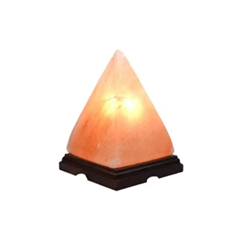 Solna lučka izdelana je iz naravne himalajske soli v obliki piramide z prekrasnim lesenim podstavkom.