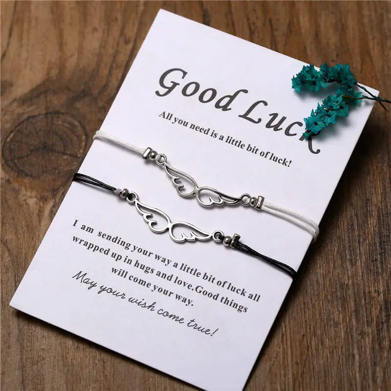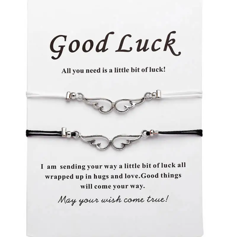 Ta prelepa zapestnica prijateljstva angelska krila s pripisom sporočila good luck, prinaša srečo, zato je odlična kot darilo za fanta ali darilo za prijateljico.