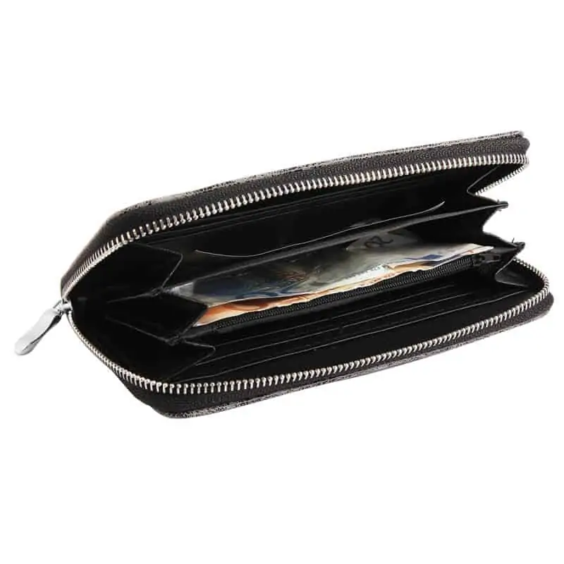 Denarnica je dovolj velika za vse potrebne stvari saj ima 3 velika predelka za denar, 1 predal z zadrgo za kovanice in celo 8 predelov za kartice.