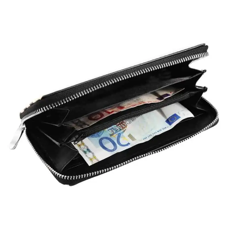 Ta prekrasna ženska denarnica je izdelana iz imitacije usnja in je zaprta z zunanjo zadrgo ter bodo zagotovo vse vaše stvari na varnem.